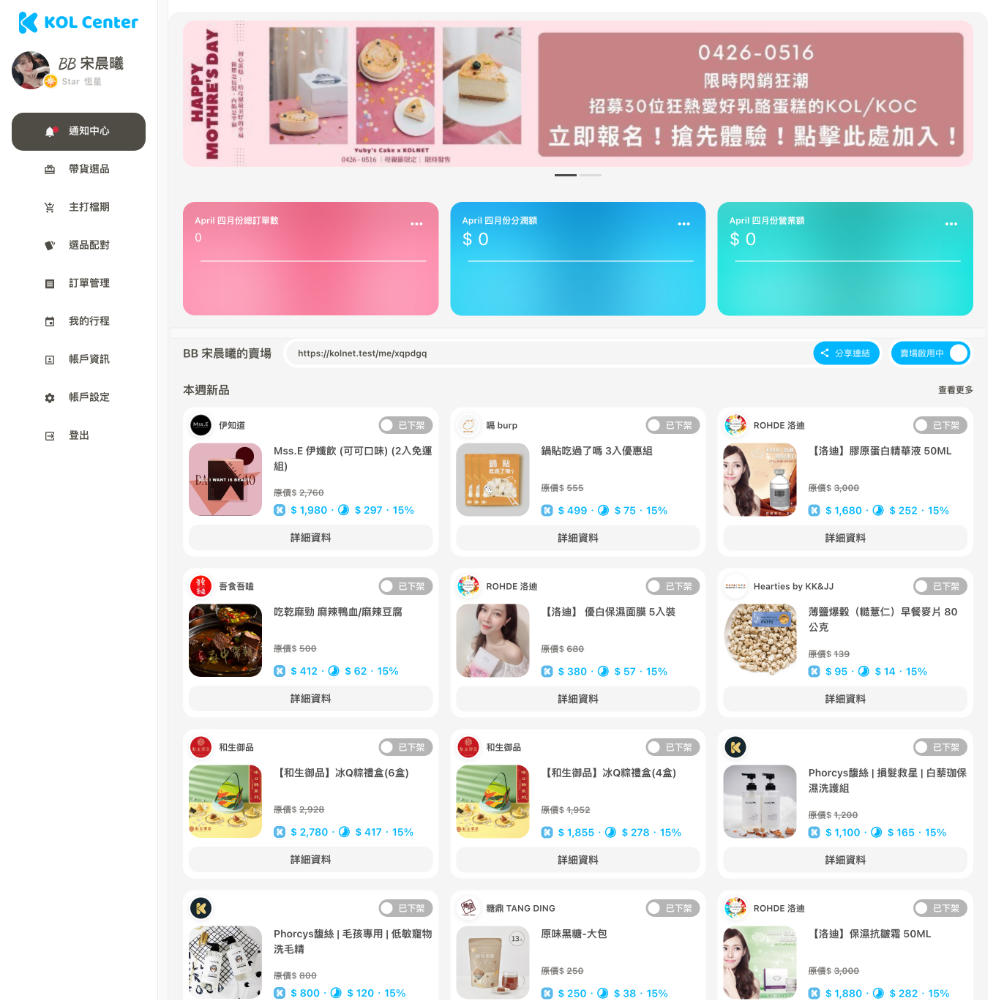 KOLNET 是一個為創作者、網紅及意見領袖量身定制的全方位平台,提供專屬的「KOL Center」會員特權,助您開創成功事業。在 KOLNET,您將獲得豐富的商品選擇、時尚品牌代言、美食餐廳體驗、旅遊住宿探索,以及多樣化的官方精選活動。我們致力於為您創造獨一無二的商業價值,實現個人品牌的蛻變與成長。